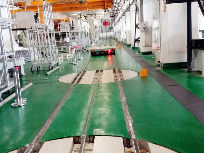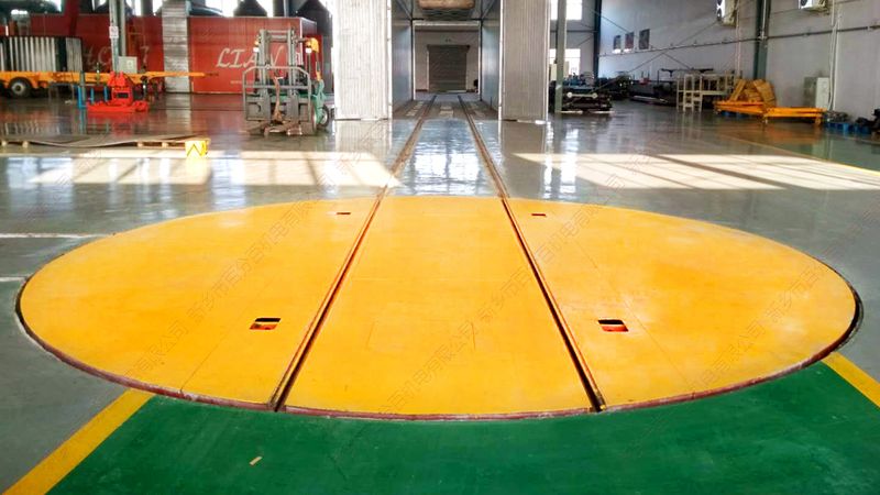 它非常適用于裝備生產(chǎn)線的環(huán)形軌道、交叉軌道等工作場(chǎng)合。通過運(yùn)載車輛行駛到換軌轉(zhuǎn)盤上,轉(zhuǎn)盤轉(zhuǎn)過指定角度的軌道上,來實(shí)現(xiàn)任意角度交叉軌道的換軌操作,安裝自動(dòng)化定位裝置,實(shí)現(xiàn)平車平穩(wěn)的軌道對(duì)接,可通過自動(dòng)化定位裝置來調(diào)整對(duì)接軌道的角度來實(shí)現(xiàn)準(zhǔn)確對(duì)接,另外可以實(shí)現(xiàn)自動(dòng)化無人控制。
