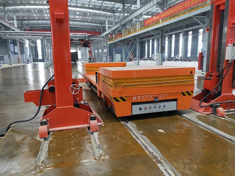 在現(xiàn)在的自動化生產(chǎn)車間,常常會見到很多的交叉軌道,這樣的交叉軌道不只是讓不同軌道上的車輛各自行走,還要求不用的軌道之間互相交換,來實現(xiàn)不同軌道上的車輛將物件運輸?shù)浇徊孳壍赖墓ぷ魑恢蒙?,而要在交叉軌道上行走,就需要轉(zhuǎn)換裝置,這樣就需要特殊的車來實現(xiàn)這個功能,我們?nèi)∶麨?strong>縱橫移動軌道平車。