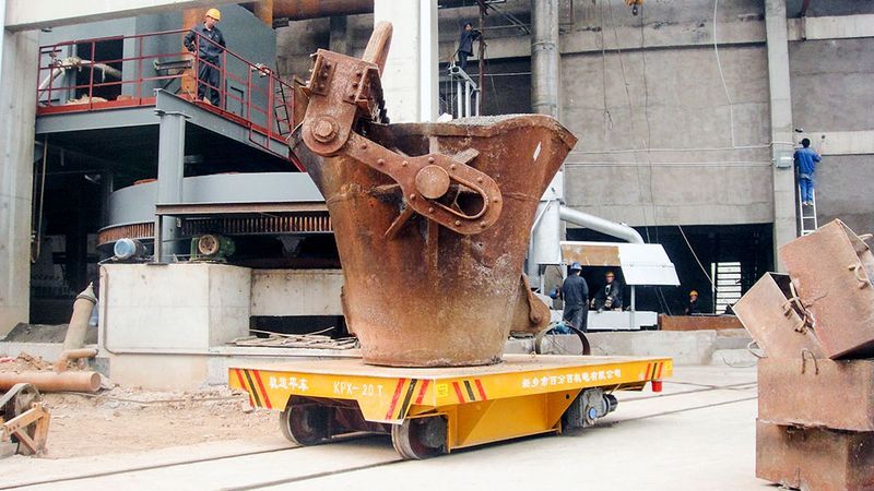 鋼包的尺寸大小不同,噸位也不一樣,對(duì)于小噸位的蓄電池軌道平板車,一般臺(tái)面設(shè)計(jì)為平的,鋼包直接放到上面就行了,對(duì)于大噸位的鋼包車,由于體積較大,為防止側(cè)翻,一般會(huì)有夾軌器輔助。采用遠(yuǎn)程無線控制系統(tǒng),可實(shí)現(xiàn)無人操作,保障人員安全,加裝PLC系統(tǒng),可實(shí)現(xiàn)自動(dòng)化智能化運(yùn)行。