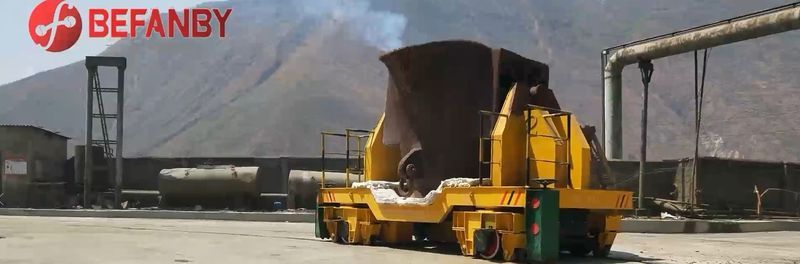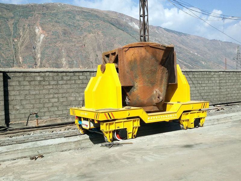 鋼包的尺寸大小不同,噸位也不一樣,對于小噸位的鋼包車,一般臺面設(shè)計為平的,鋼包直接放到上面就行了,對于大噸位的鋼包車,由于體積較大,為防止側(cè)翻,一般會有夾軌器輔助。采用遠(yuǎn)程無線控制系統(tǒng),可實現(xiàn)無人操作,保障人員安全,加裝PLC系統(tǒng),可實現(xiàn)自動化智能化運行。
